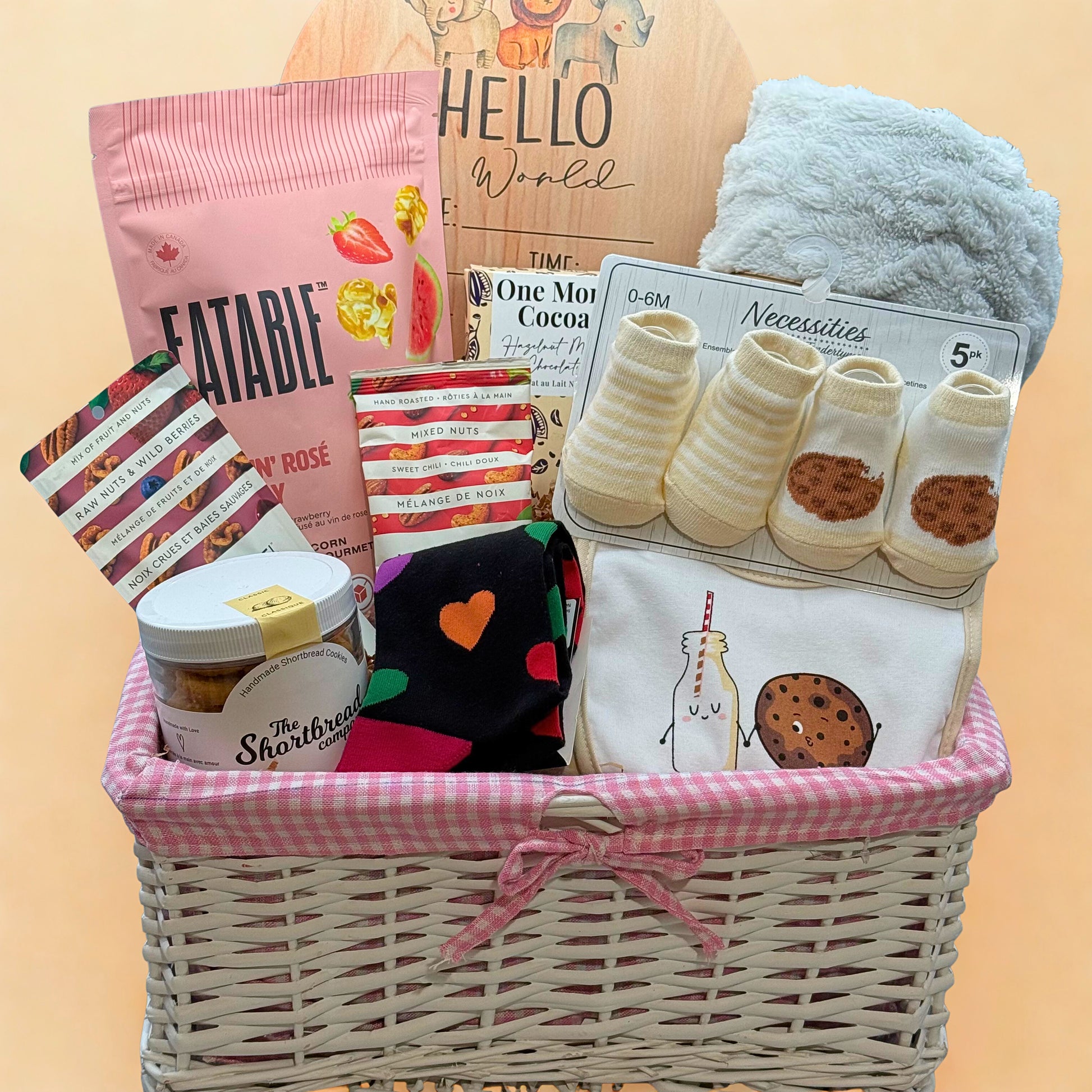 Welcome a new little one with Kindly Wrapped’s artisanal baby gift basket—filled with small-batch Canadian treats and charming baby essentials. It’s an elegant way to celebrate new beginnings, bringing joy to parents and baby alike. Thoughtfully curated with the highest quality products from beloved local makers, this basket makes every moment sweeter and every memory more special.