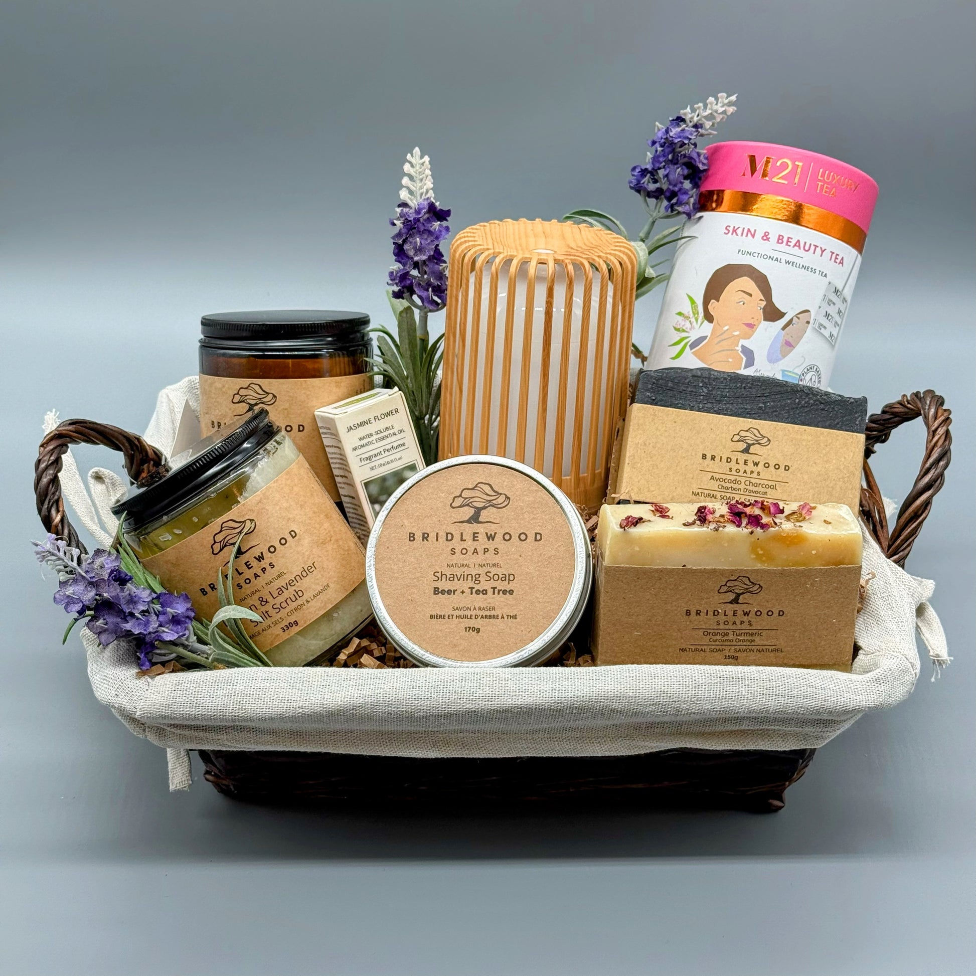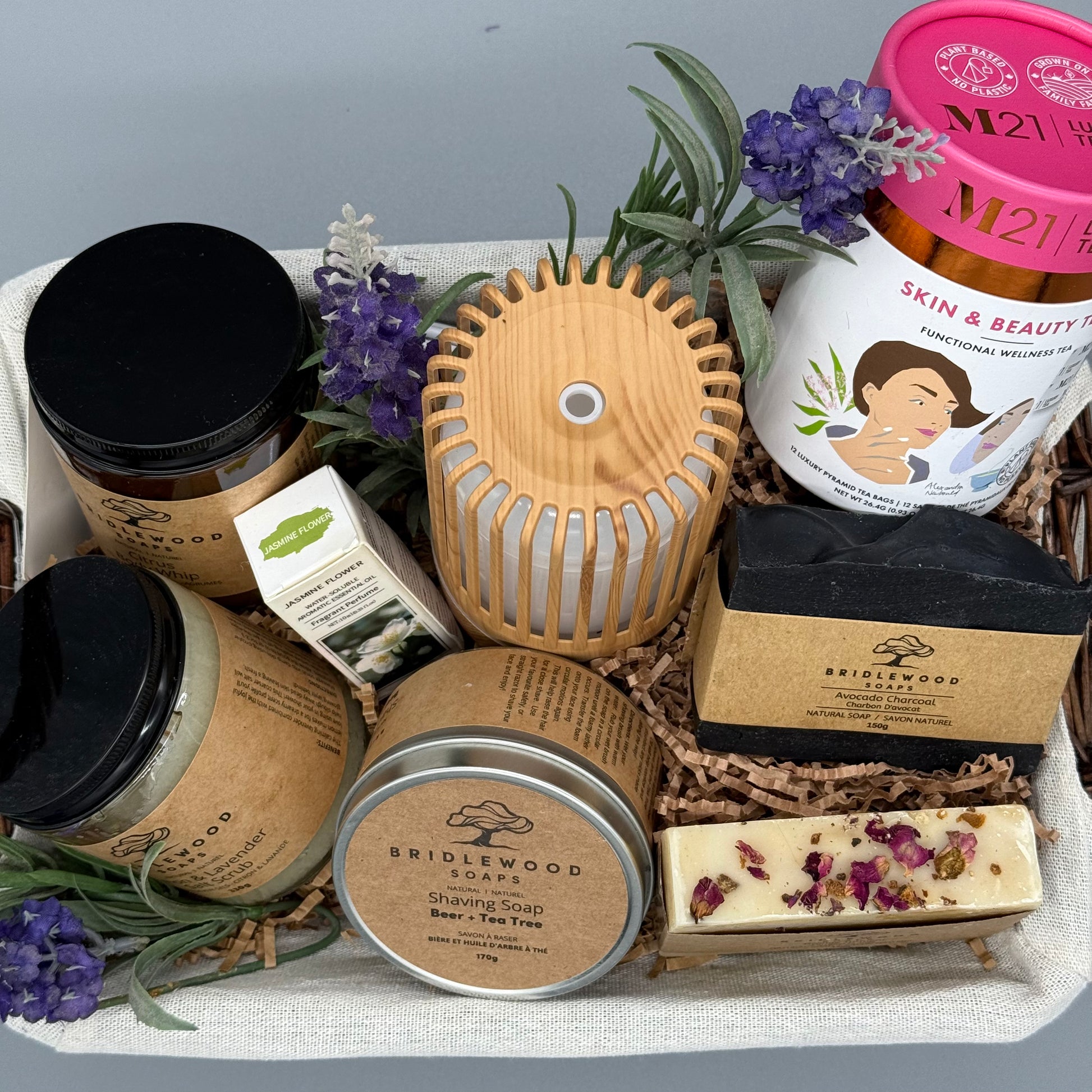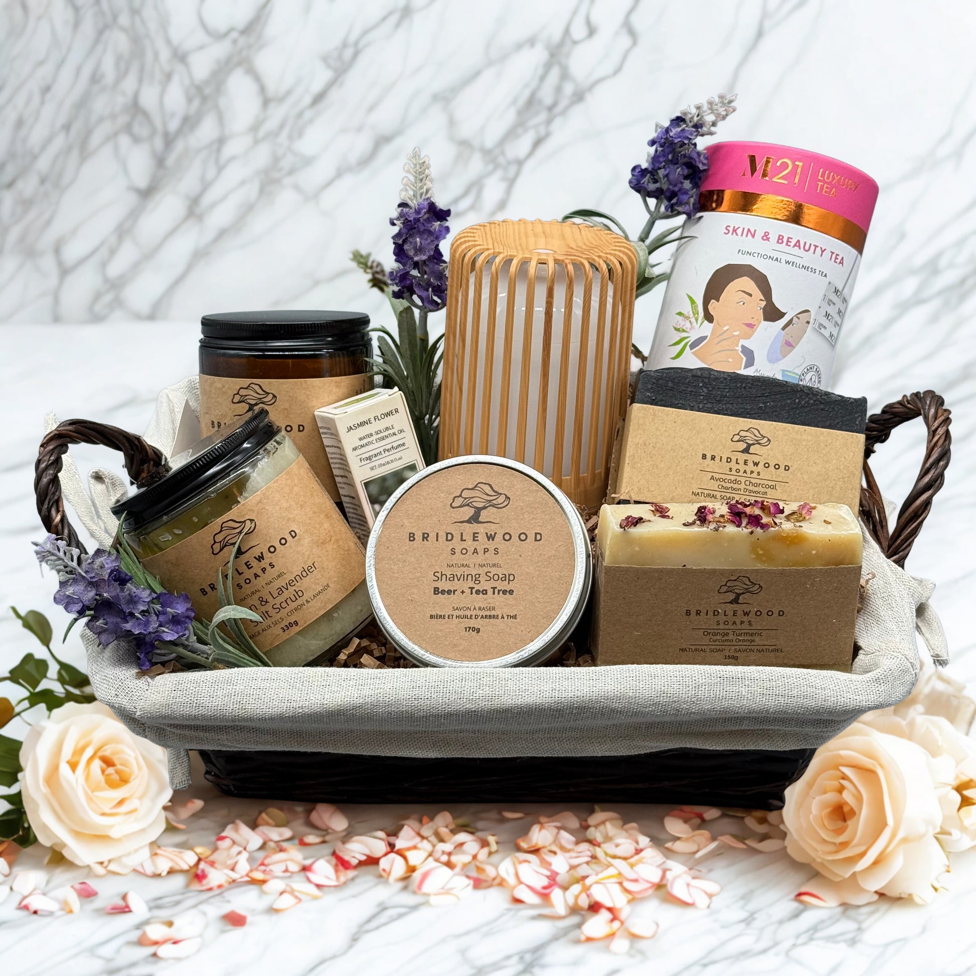 At the heart of this basket are exquisite, all-natural body care products from Bridlewood Soaps, all lovingly handmade in small batches right here in our community. Feel the difference of pure, locally crafted quality on your skin. From a soothing shared bath to a calming aromatic ambiance, this gift is an invitation to slow down and simply be together. Perfect for anniversaries, special occasions, or a well-deserved weekend of tranquility.