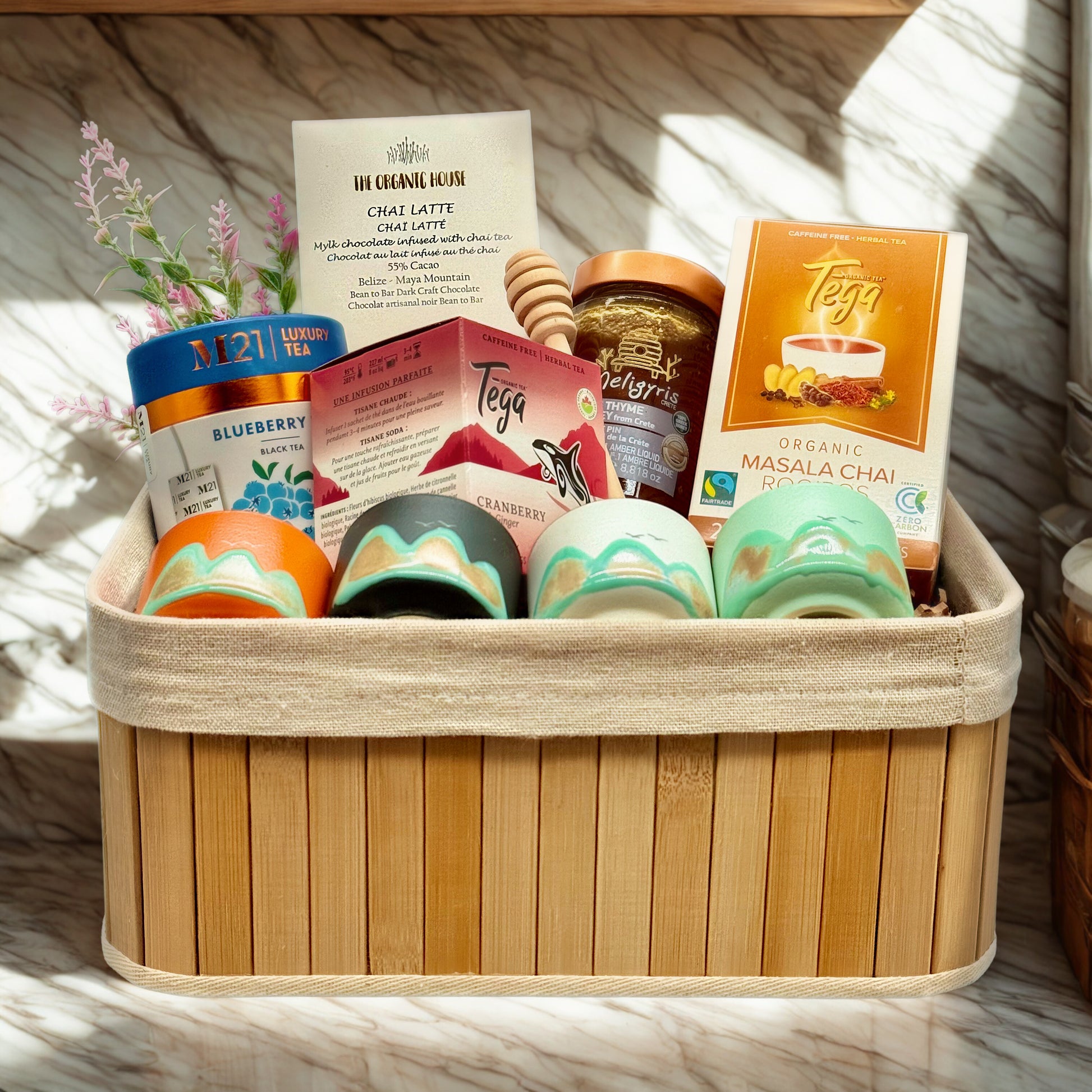 We've journeyed the globe to curate this collection of exceptional teas, designed to turn your tea time into a tranquil and delicious escape. An ideal gift for the discerning palate or a well-deserved indulgence for yourself or for your loved ones, this is more than a basket—it's an invitation to travel the world, one sip at a time.